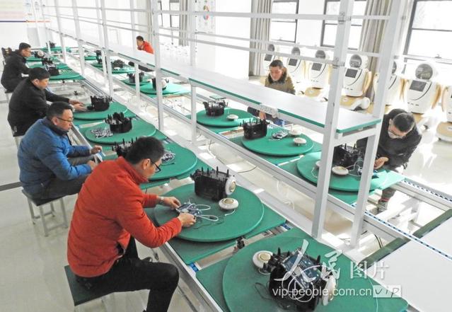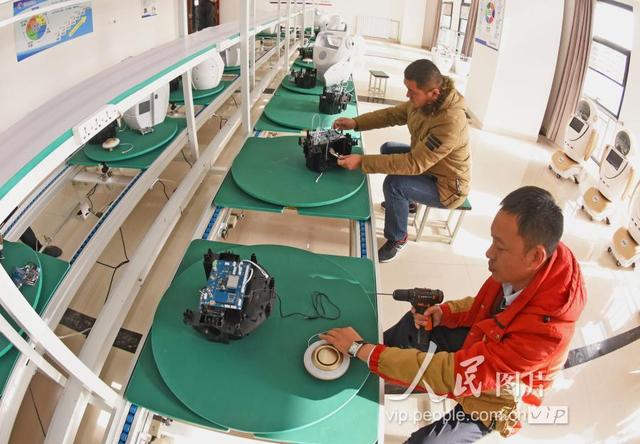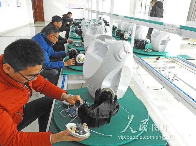 2018年12月4日,连云港市海州经济开发区,技术人员在安装智能商用服务机器人。