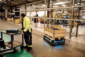 移动机器人能够将生产人力从所有繁琐的操作中解放出来。目前,格兰工厂的生产流程中有许多环节都需要操作员每天多次将组件运送至下一道工序。部分员工需要在工作期间驾驶托盘车走很长的路。工厂的构想是让零部件自动到达目标工位,避免装配线旁的员工再耗费时间取用装有所需零部件的套件。因此,工厂将研究如何高效运送组件,以及哪些地方适合利用移动机器人打造固定穿梭巴士或出租车式服务来运送零部件。