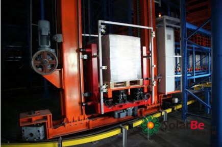 位于苏州协鑫光伏西厂区的智能仓储占地面积700余平方米,3层12排式货架,托盘货位828个,比原先扩容了45%,货架最高处达6.8米,由AGV叉车、自动传输带、RGV搬运车、双向巷道堆垛机等智能设备组成,配合先进软件系统,无需人工介入操作即可实现24小时出/入库。