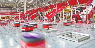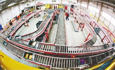 京东“亚洲一号”分拣中心智能设备负责人何少颜比喻说:“这里就像一个大梳妆台,里面有很多个抽屉。货物收进仓库后,分门别类进入抽屉存放,这是入库。顾客在京东商城下单后,电脑根据订单匹配到对应的仓库,向提升机和穿梭车发出指令,将订单对应的货物从仓库送出来,进行初分,这是出库。货物上架和出库都是自动化,减少了人工劳动强度,效率比传统人工仓提升了两三倍。今年‘双11’最高峰,天狼仓出库量达到4.8万件。”