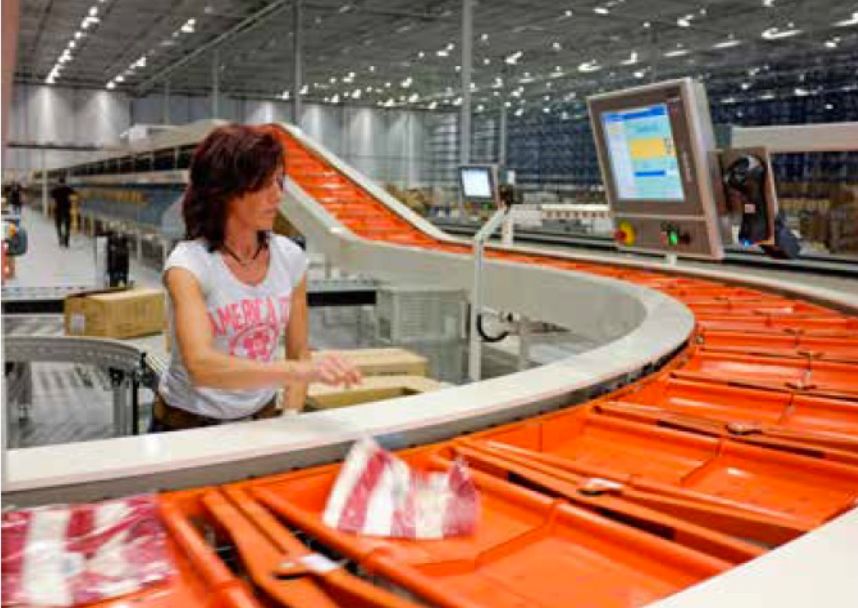 Abercrombie&Fitch项目中,分拣系统的使用可以不断提升作业效率,减少配送中心的拣选成本,提高库存周转率。