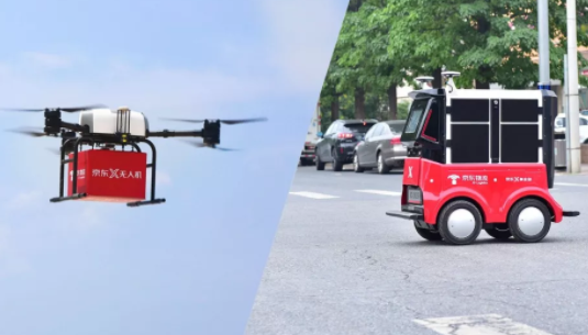 ▲ 获得专利大奖的京东物流无人机和配送机器人