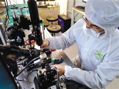 光子算数工程师在超净实验室测试光子人工智能芯片。本版图片/受访者供图