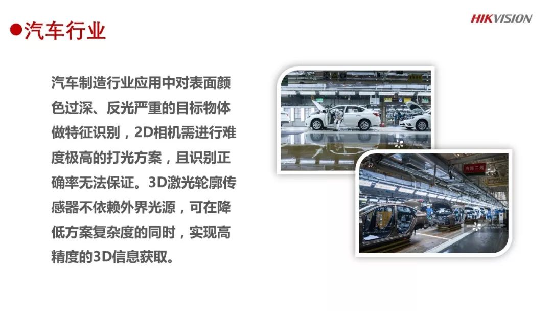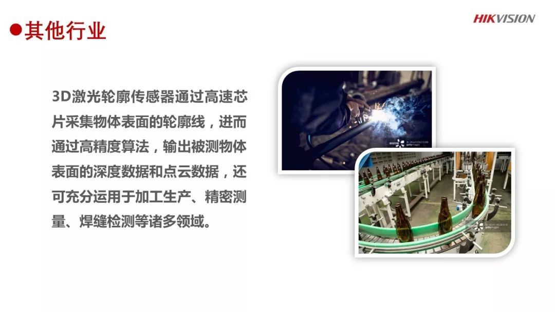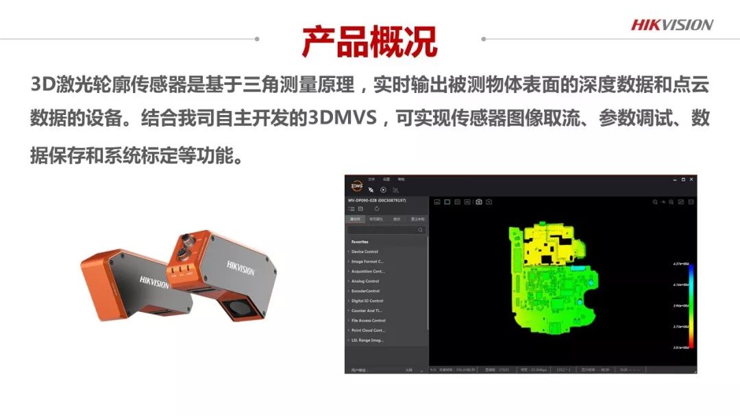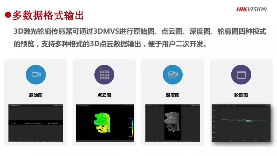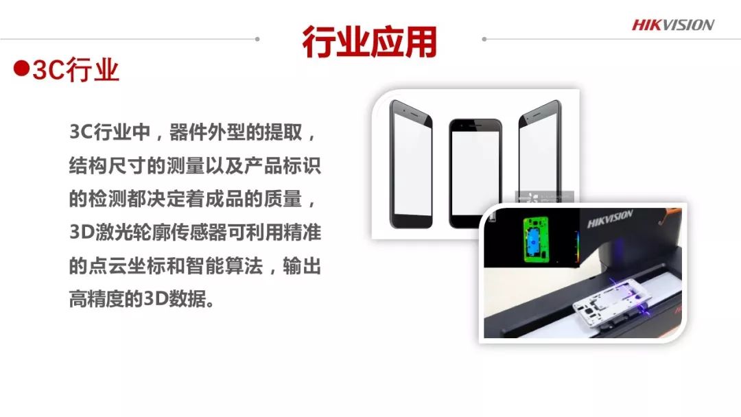 随着工业自动化水平的提高,在线视觉检测要求日趋复杂,检测项目也从二维检测向三维检测拓展。海康威视3D激光轮廓传感器旨在实现在线高速非接触式高精度三维测量,提升产品质量,量化生产数据,为生产数据全程追溯夯实基础。