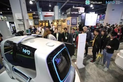 除京东外,美团也是首次参展CES2019,在展会上,美团首次亮相了新型的无人配送机器人——福袋!