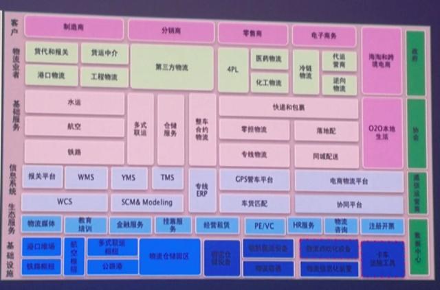 第一层,物流业者,像顺丰、德邦等企业。它们也是根据实效性、产品标准化被需求切分。第二层,真正做基础服务的人,物流业者主要是提供解决方案的人(第三方物流),他们被行业切分,真正底层的是提供服务的人(物流基础业者)。第三层、提供解决方案、TMS等的人。第四层、生态服务。第五层、资产提供方、准备商。