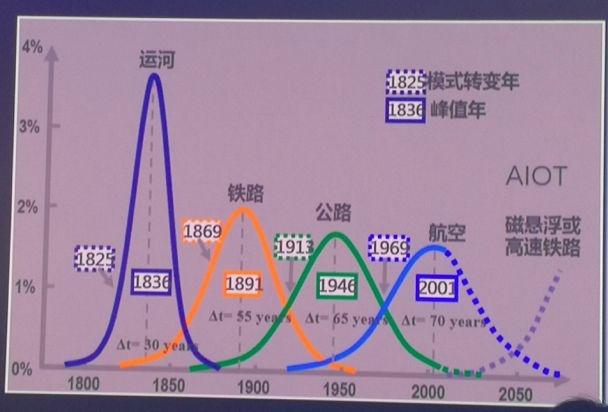值得一提的是每一次模式转变和峰值年差异非常大。我们可以看到1900年依托铁路的物流企业是最牛的企业,为铁路服务的货场、货栈是最牛的。后来公路起来了。我们可以看到1946年时铁路降到了底,然后飞机出来了。我们可以看到技术在推动整个产业的进步。下一个颠覆者是谁?我们也不知道,有可能是磁悬浮,有可能是ElonMusk的地下真空运输系统,也有可能是AIoT。