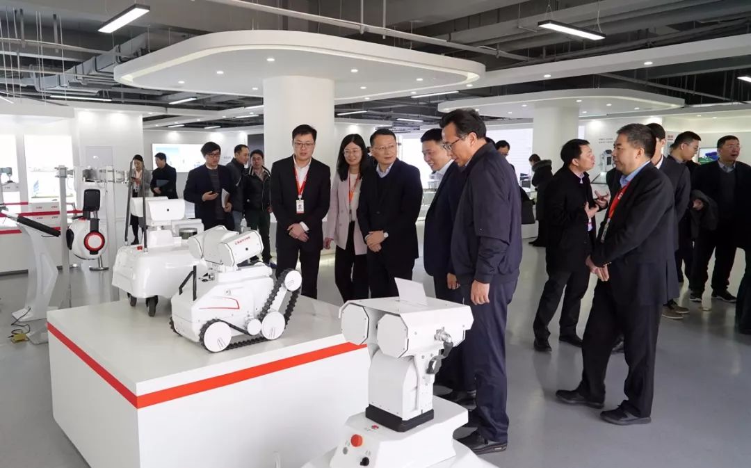 黄明松董事长陪同来访领导一行进行座谈交流并参观了科大智能人工智能机器人展示厅。