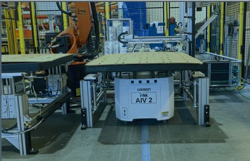 欧姆龙公司研发生产的自主导航车缩短了各个加工工作站、工作间之间的零部件运输时间