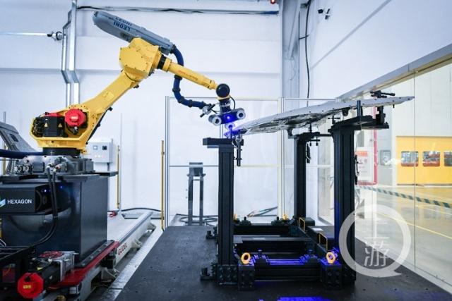 金康智能工厂内正在操作的蓝光检测机器人。上游新闻记者 李斌 摄
