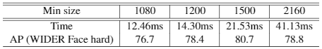 SFace 在不同分辨率下的运行时间(单张NVIDIA Titan Xp)