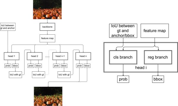 可以发现,具体做法部分借鉴了 SFace,即把前一个 Stage 的预训练边界框与 groundtruth 边界框之间的 IoU 作为下一个 Stage 的 Classification Label;随着 IoU 逐渐提升,每个 Stage 的 IoU threshold 也逐渐增大,这与 Cascade R-CNN 很类似。