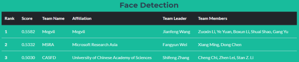 Face Detection 使用 WIDER Face 数据集原始图像,但是 Label 做了一定 Refine。据我们统计,Label 数量稍多于原数据集,导致在不对模型做任何更改的情况下,使用新Label 也会比原 Label 涨点(因此笔者建议为公平对比,今后引用 WIDER Face 的论文最好注明是使用了 WIDER Face Label 还是WIDER Challenge Label)。此外,WIDER Challenge 数据集不同于 WIDER Face 数据集的是,使用了相同于 MS COCO 的Metrics,这意味着对模型的回归能力提出了更高的要求。