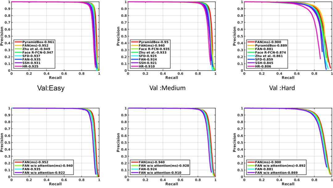 FAN 在 WIDER Face 上曾经保持了半年的 state-of-the-arts。由于仅仅验证方法的可行性,FAN 没有叠加任何 trick,只在原始的 RetinaNet 上调整锚点框,增加我们的 Spatial Attention,因此 FAN 还有很大的上升空间。