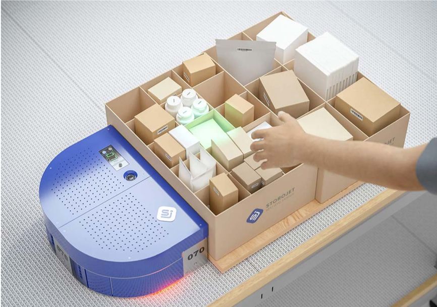 STOROJET是德国制造的自动存取和订单拣选系统。模块化的系统在结构上具有极高的灵活性,整个系统通过自动升降梯连接多层,使紧凑的仓储机器人能够以最节能的方式运输货物到订单拣选工作站。除了可以完整地利用高达6米的空间,提高空间利用率之外,还可以实现降低成本及减少30%-80%的摘果拣选时间。