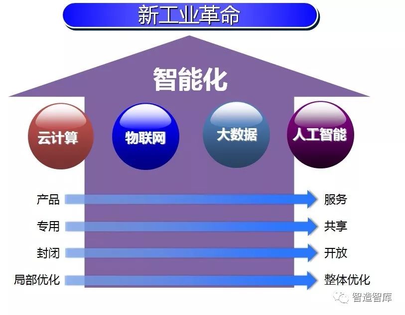 工业4.0在德国被认为是第四次工业革命,主要是指,在“智能工厂”利用“智能设备”将“智能物料”生产成为“智能产品”,整个过程贯穿以“网络协同”,从而提升生产效率,缩短生产周期,降低生产成本。它的典型特征是:融合性与革命性,是新一代信息技术与工业化深度融合的产物,是一种新的生产方式,推动传统大规模批量生产向大规模定制生产转变。