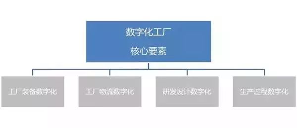 数字化工厂的建设的核心要素可以归纳为工厂装备数字化、工厂物流数字化、设计研发数字化、生产过程数字化,如下图所示。通过这四个方面的建设,带动产品设计方法和工具的创新、企业管理模式的创新。