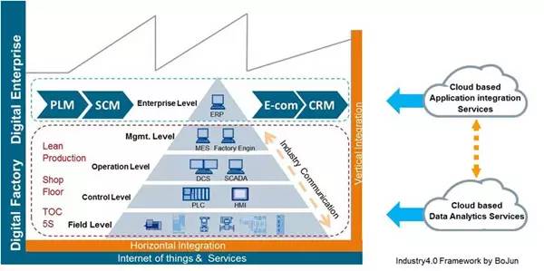 上图中的参考架构即是笔者研究参考了众多工业4.0框架体系后,提出的针对企业的数字化转型框架模型,重点是根据当前企业现状从管理咨询维度和IT信息化维度,分解智能制造时代数字化车间、数字化工厂和数字化企业的层级关系,面向落地和实施。