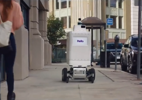 SameDay Bot是一款由电池提供动力的机器人,最高时速达到10英里(约16公里),可以借助LIDAR传感器和常规摄像头自主穿梭于行人和车辆之间。