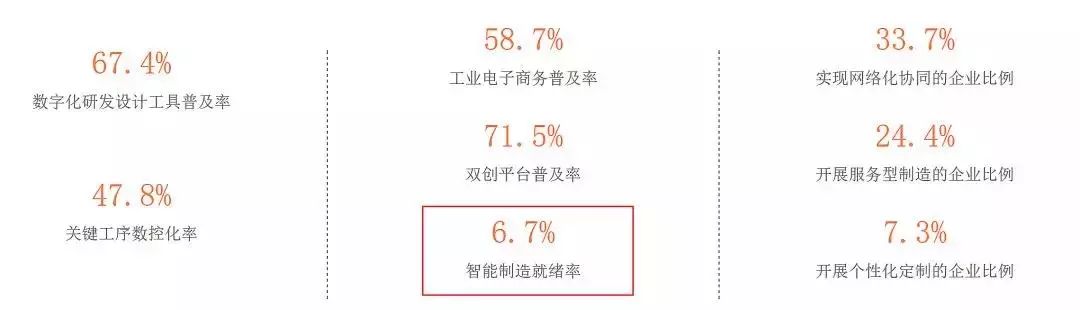根据两化融合服务平台的数据来看,智能化的就绪度,现在只有6.7%,仍然处于较低的位置。对制造业来说,智能化发展还是要从实际应用需求出发,一步一个脚印的发展。所以,对智能化有雄心壮志的工业企业,当前首先要把企业的两化融合搞好,把数字化和网络化阶段的工作,根据企业实际情况,有目标、有步骤地搞好,在有实际需求,条件基本具备的情况下,向智能化迈进。