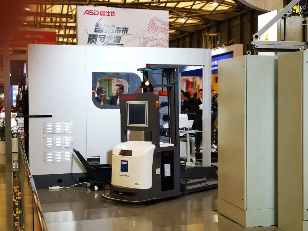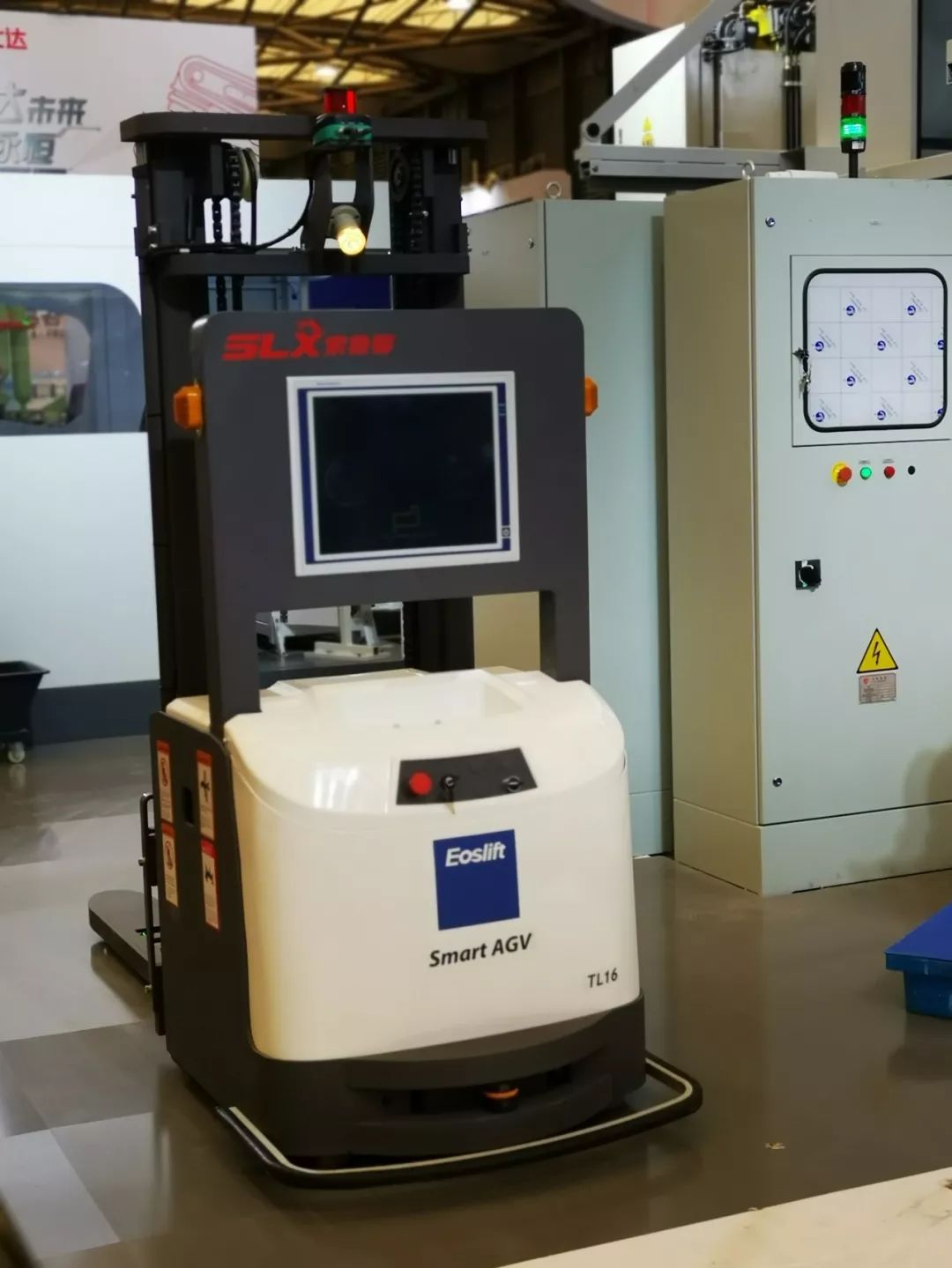 EOSLIFT AGV自动物料搬运设备可在有限的存储空间里,灵活高效准确地完成智能物料搬运服务,支持生产型仓库或配送中心内多种类型的搬运作业,实现从收货到入库、从出库到收发料,从仓库到分拣等各种长短距离搬运作业。展会现场,TL16灵活的完成了取件、运输、入库等指令,精准的动作让在场观众惊叹连连。