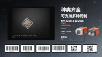 海康威视130万像素IM系列智能读码器,搭载深度学习硬核,内置强大读码算法,可高效完成各类一维码和二维码的读取,算法鲁棒性强。