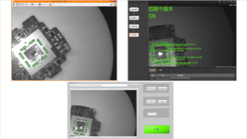 海康威视开放平台是基于X86架构的开放式一体化平台,提供主流算法平台SDK,移植简易,易于开发。现场展示了其搭载VM算法平台、Halcon、Labview同时进行模板匹配。