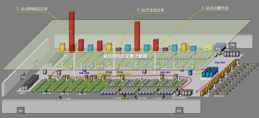 除此之外,旷视河图还有个流量分析的功能,可在路径规划、库维优化、负载均衡、作业调度层面提供大量优化算法,以适配不同的业务场景。彭广平表示,通过这一功能,旷视河图会对每个区域的实时流量进行一些统筹的规划,比如说A区这会儿流量比较大,可能B区会分一些流量出来。当然一般在大仓里面不仅仅是两个区,会分很多区,这里面也是让整个仓库更加协同、更加平稳。
