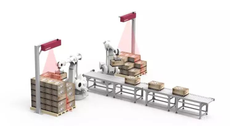 最后,托盘尺寸1200*1000mm,垛高不确定,最高达1800mm。传感器定位精度和安装高度成反比,与工件大小成正比。垛形高大且单个纸箱尺寸小,这对传感器提出了更高的要求。