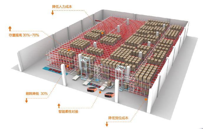 快仓系统解决方案可以为传统仓库作业模式节省5-7成人工,并有效提高平效,降低错单率,产品损耗率和订单消耗品开销等,从而大幅降低仓库的运营成本。