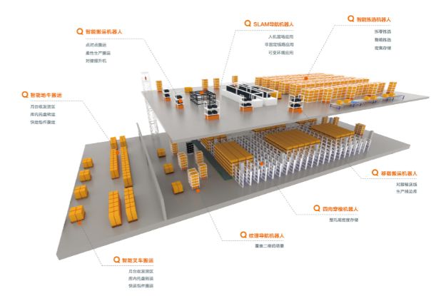 快仓智能根据实际需求以及现有信息化平台、通过增加硬件设施和深化信息调度,实现仓储管理信息化、 标准化、 可视化、 智能化、自动化。以信息系统平台和硬件设施为支撑,成品出入库和物料搬运为主体业务,打造工厂的智慧管理和运行,将仓储、 搬运、 信息、 人员等资源柔性调度,实现工厂智能化。