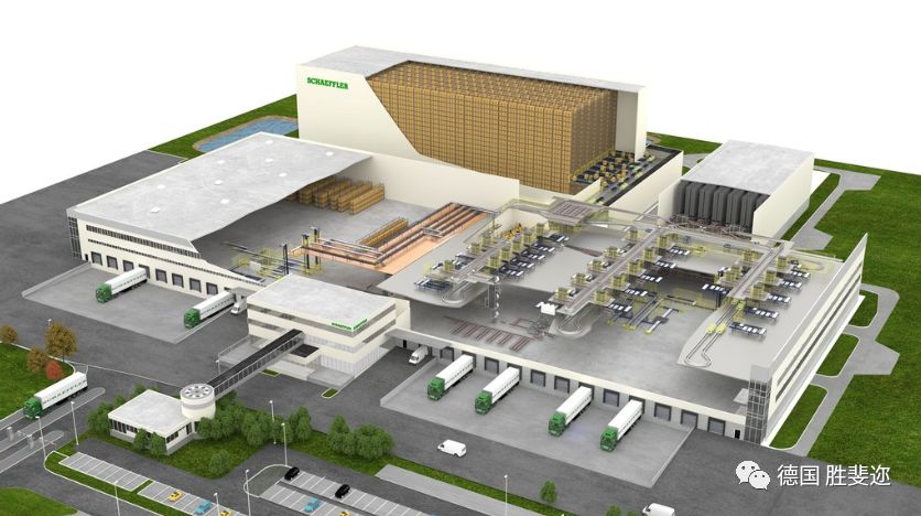 新的配送中心的规模确实令人印象深刻:它占地面积94,000平方米 - 其中物流面积超过25,000平方米,有两层 - 占地近15公顷。高度动态系统的全自动化流程将内部物料流从货物登记到调度分期,并帮助舍弗勒实现其目标。除了所需的箱式和托盘输送系统外,胜斐迩还安装了一个全自动的7巷道高架仓库,28,000个托盘存储位置和一个双层箱式存取系统,大约95,000个仓位存储位置,以及符合人体工程学的工作站。一个900米长的电动托盘输送机和50辆车也可以提供高效的货物运输。用于卸垛和码垛料箱的全自动机器人应用程序完善了供应和服务范围。输送系统还分别连接到具有20个缓冲存储位置的一个排序塔,以确保输出货物区域中的包装位置的有效和顺序供应。胜斐迩的WAMAS®物流软件充当服务器系统。胜斐迩IT专家将软件连接到舍弗勒的SAP EWM。