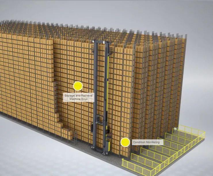 所有存取系统的行程和升降机驱动电机和变速箱的状态监控共执行42个舍弗勒SmartCheck设备。