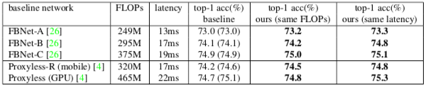所有实验是在 ImageNet 上进行的。验证集和测试集的设定遵从Proxyless NAS。对于超网络的训练,以及(进化搜索之后)最优模型结构的从头再训练。