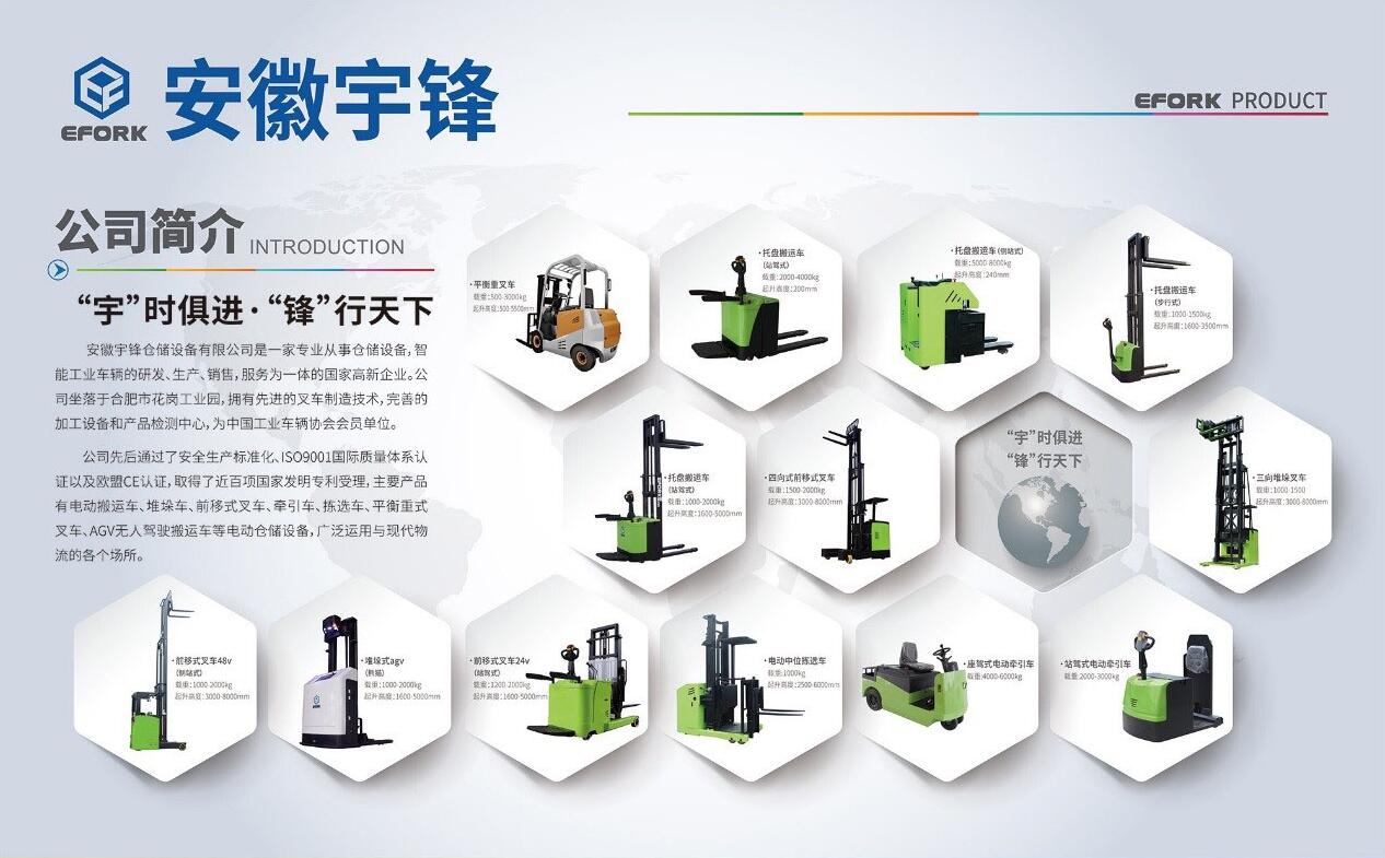安徽宇锋作为创新型智能物流一体化解决方案系统集成商,为行业客户提供了从前期设计、终端制造、现场安装、后期维护的全套服务。安徽宇锋秉承为客户创造价值的经营理念,不断探索创新。产品系列涵盖从常规的电动叉车、搬运车、堆高车、前移式叉车、到专业的窄巷道车辆,如:三向叉车、四向叉车,再到特殊行业的定制车辆,如:模具专用车,冷库车、防爆叉车,以及高端智能AGV系列。