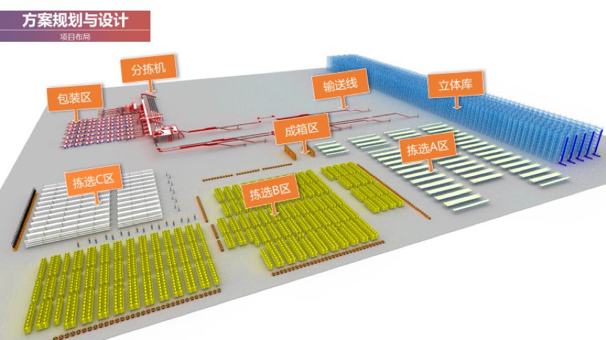 要做“货到人”方案,每个项目都要去做很多方案规划,这个规划是我们为天津项目做的规划,首先要去采集我们的业务数据,然后要去做动线规划、做视频。这样通过数字化的前期介入,就保证了项目落地的时候是有的放矢,心中有数的。