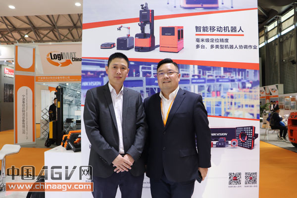 海康威视移动机器人事业部总经理杨卓(右)与我网记者合影