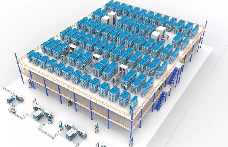 整仓货架为通用轻型隔板货架,无需纸盒,具有实施快,拆装方便,容易搬迁的特点。使用货箱存储商品,每个货位可以存储很满,增大存储容量;同时货箱拣选系统可以和机械臂拣货配合,当机器人到达工位时,将货箱调整到拣货最舒适的高度,提高拣货速度及效率。