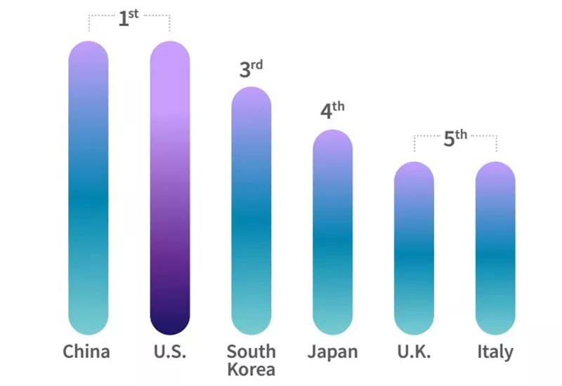 一年前,中国和韩国在5G竞赛中处于领先地位,美国紧随其后。今年,美国已与中国并列第一。