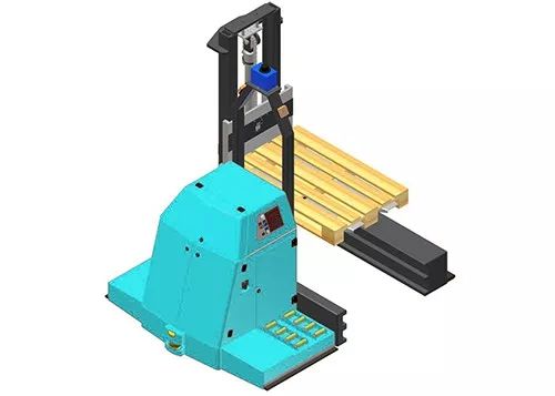 在工位上,人工按下呼叫按钮,侧叉式AGV车自动运行至取货工位后,车上的侧叉以低位伸出货叉,待货叉出叉到位后将其提升到高位,把货物提升离开货台;随后货叉收回,将货物取放到AGV车上;然后,AGV自动运行到放货工位,并将货物放到工位台架上;完成后,AGV车自动运行到等待工位,等待下一呼叫。在等待工位,根据电量消耗情况,AGV车可进行自动充电。侧叉式AGV车具有左右双侧出叉功能,即AGV车可以实现左右两侧移载货物。