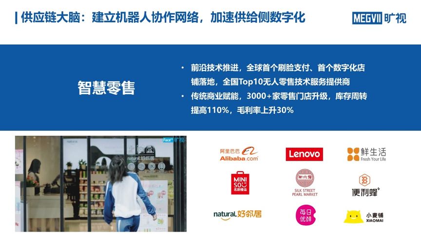 具体来看,在智能零售领域,旷视凭借多年在算法、人脸识别、网络建设等层面的深耕,帮助客户把每个门店网络进行数字化构建,提升门店的坪效,同时帮助门店优化采购决策甚至实现库存管控。“只有将这些环节完成数据化,下一步才进入优化环节。”任志伟强调。