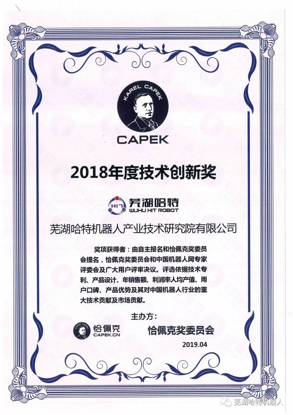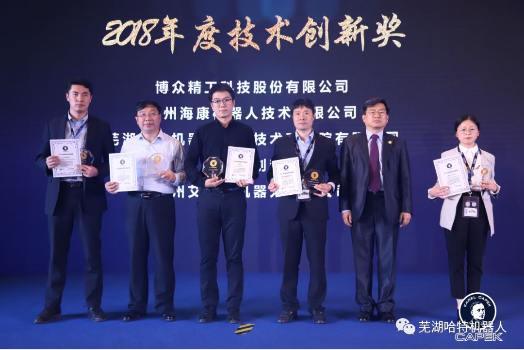4月19日,2019中国机器人产业发展论坛暨第五届恰佩克颁奖典礼在芜湖市悦圆方酒店如期举行,中国机器人行业内的“半壁江山”齐聚于此,围绕机器人行业发展、产品技术创新、资本助力等行业热点话题,共议发展态势,共同见证被称为机器人行业“诺贝尔”的恰佩克奖得主诞生。此次恰佩克奖共评选出116家企业和个人奖项,哈特研究院荣获“2018年度技术创新奖”。