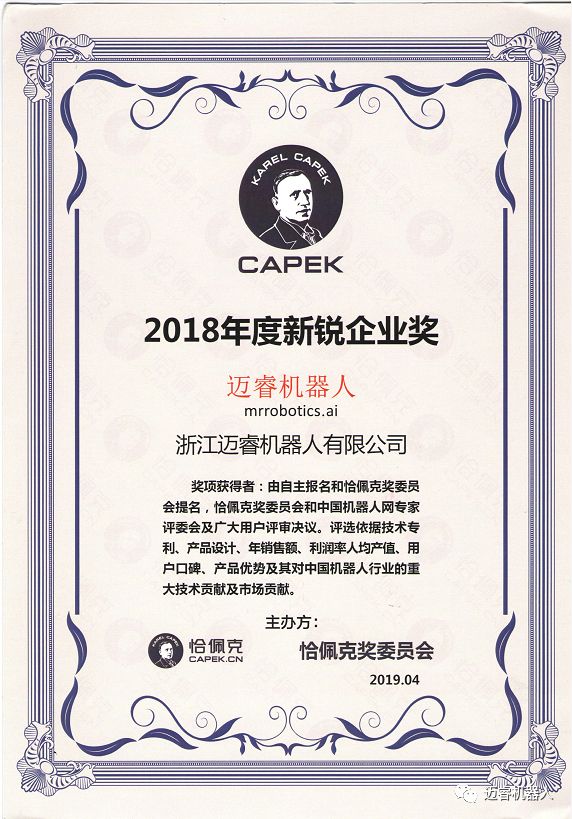 2019年中国机器人产业发展论坛暨第五届恰佩克奖在4月19日至20日于安徽芜湖隆重进行,浙江迈睿机器人受邀出席,与近五百名行业专家、工业机器人企业、服务机器人企业、系统集成商、零部件企业、科研机构、投资平台等共同见证行业盛会与大奖得主。