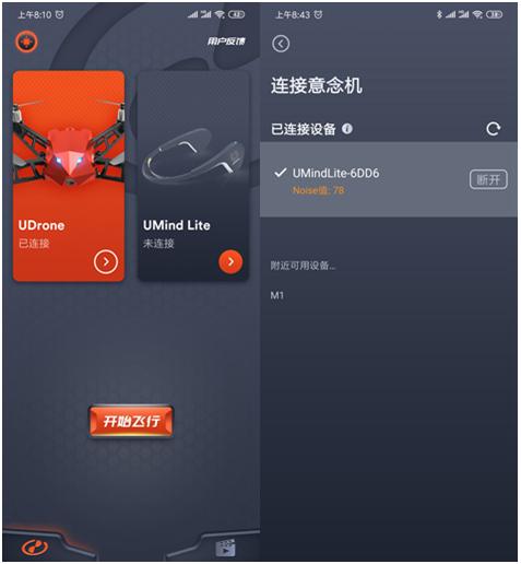 在应用端的UDrone主界面上,可以对无人机和控制器进行管理。在管理界面按下准备飞行,就可以进入无人机的控制面板,这部分的操作很容易上手,具体操作说明也可以在说明书和应用上面找到。