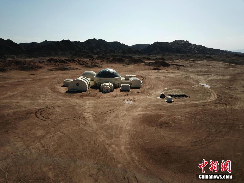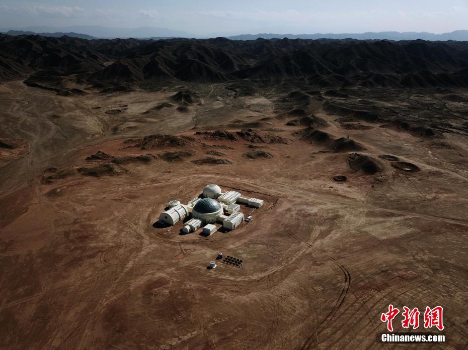近日,摄影师用无人机航拍的甘肃金昌“火星”营地。位于甘肃省金昌市山区的“火星1号基地”根据真实航天逻辑打造,通过让参观者体验登陆舱、地貌...