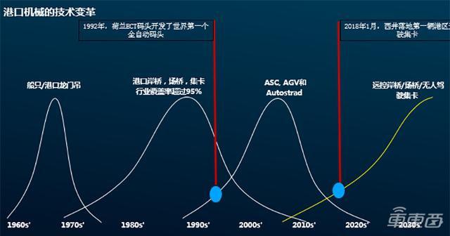 前两个技术周期,主要都围绕着人工操作的机械发展,包括船只、港口龙门吊、港口岸桥、场桥的设计优化等。