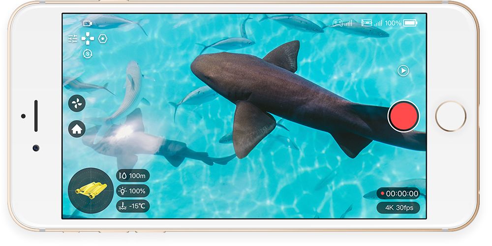 操控简单,能与手机或者平板电脑连接,同步观测水下风景,并电池拥有 3 小时续航,对摄影者非常友好。