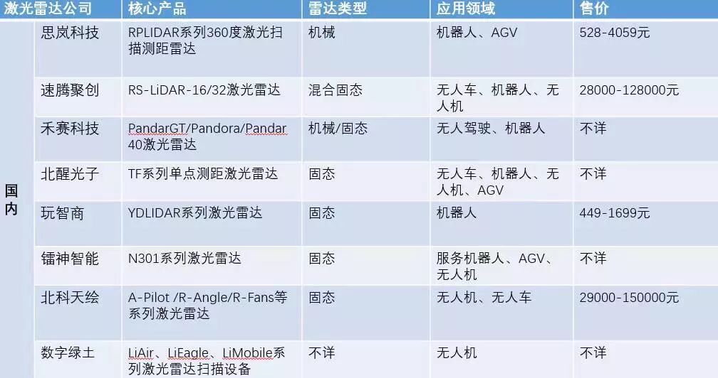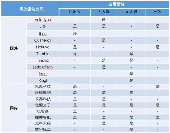 机器人领域,目前所涉及的企业包括了国外的Sick 、Ibeo、Hokuyo、Trimble以及国内的思岚科技、速腾聚创、禾赛科技、北醒光子、玩智商、镭神智能。在这众多企业中,思岚科技无论是从价格、寿命还是性能上来说都具有领先优势,在服务机器人领域已占据80%左右的市场。