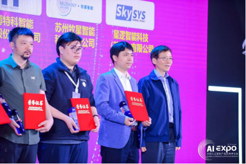 展会首日牧星智能就迎来了好消息,在全球智博会智博之夜颁奖典礼中,牧星智能荣获“中国人工智能年度十大创新企业“奖项!同批获得该奖项的还有北京商汤科技、北京中科寒武纪科技等公司。此次奖项为了表彰人工智能领域杰出的创新智能制造企业而设立,评判标准极高。本着公平公正的原则,评选由网上公众投票与专家评审各占50%进行成绩汇总排名,确定最终获奖者。历时三个多月的征集和评选,由大众投票及专家评审,从217项申报中,经过层层筛选,产生115项候选奖项进行参评,最终评选出为中国人工智能产业创新发展做出杰出贡献的企业、产品和个人获奖者共30位,并进行了隆重的表彰。