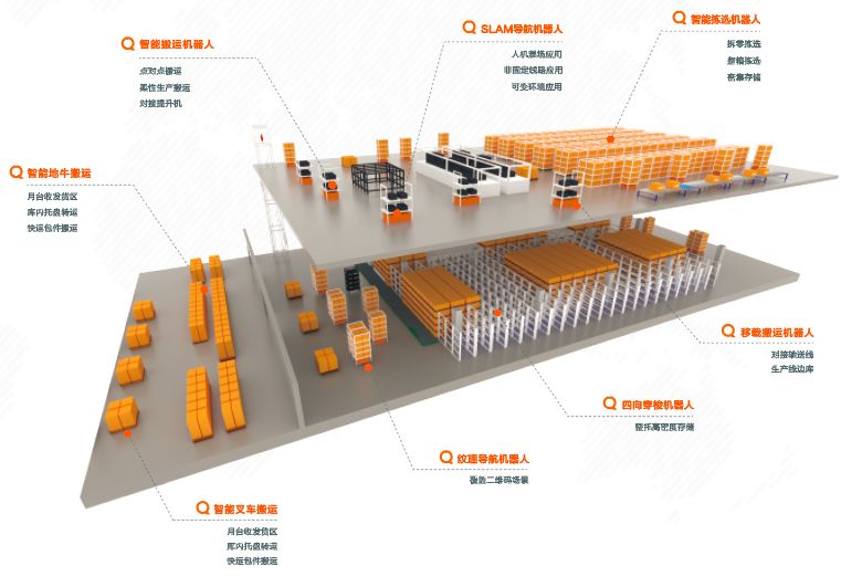 快仓柔性智能搬运解决方案的主要应用场景包括汽车、3C制造、电子电器、零配件以及仓储物流场景。相比传统人工方案,系统减轻劳动强度,降低用户的投资回报周期。